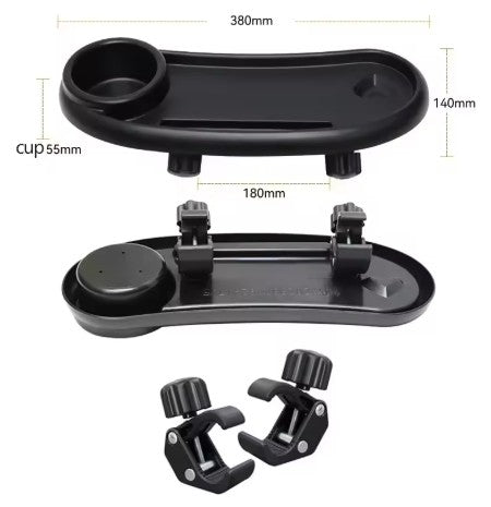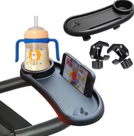 Slimme hulp voor moeders onderweg, drinkbeker, snacks én vermaak binnen handbereik.